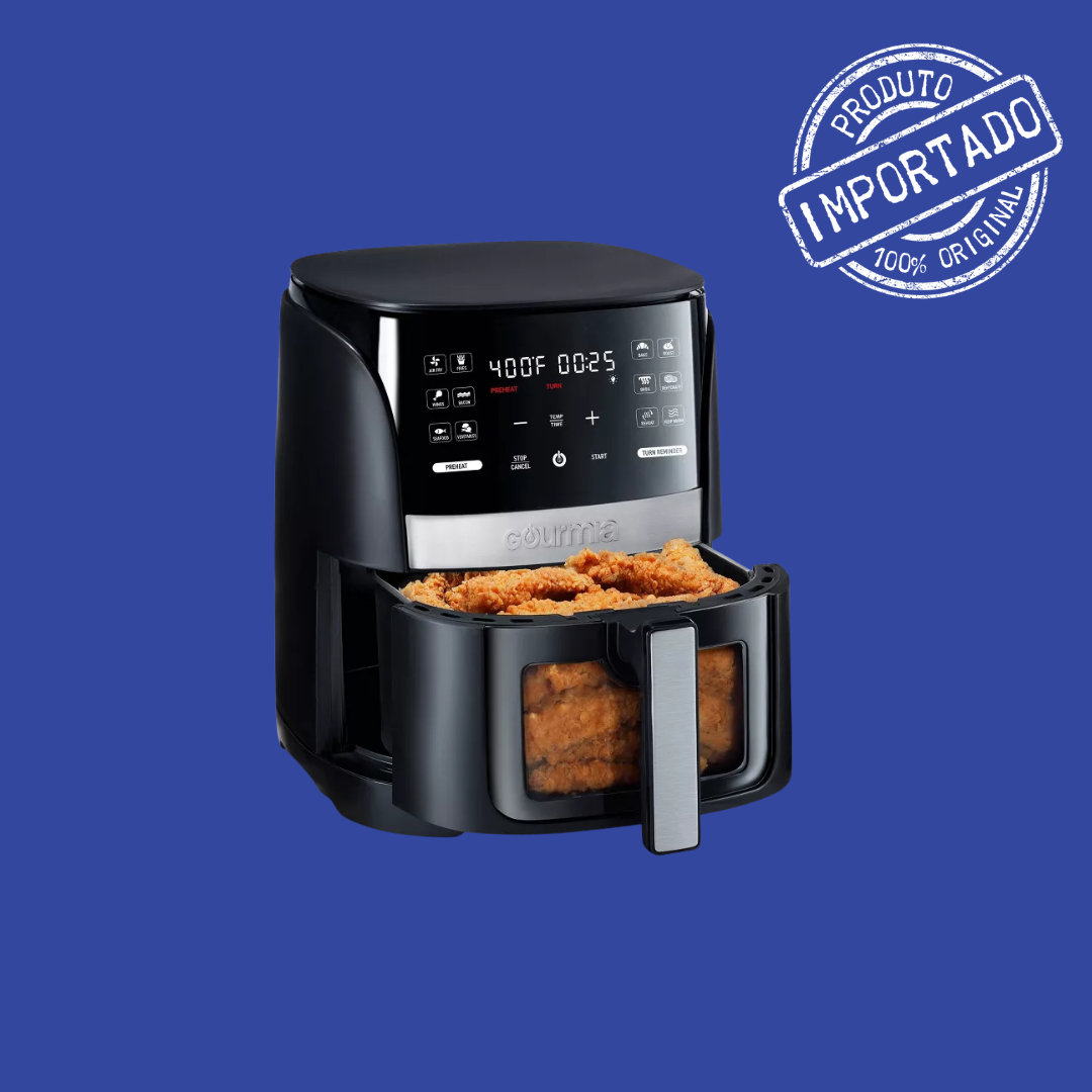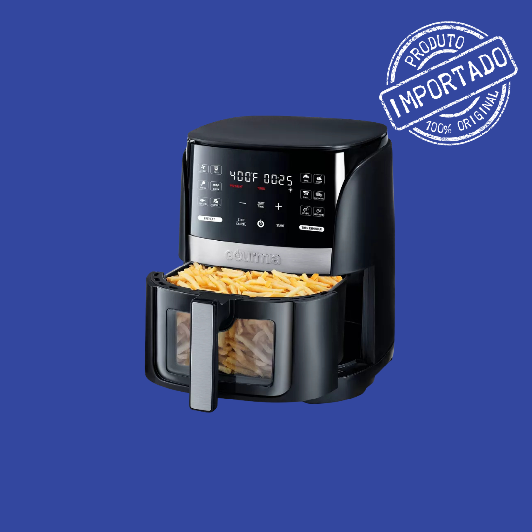 Gourmia 6‑Qt Digital Window Air Fryer with 12 Presets & Guided Cooking Black é a escolha prática, intuitiva e saudável para quem quer preparar refeições crocantes e saborosas com até 80% menos gordura do que na fritura tradicional — tudo isso sem complicação e com resultados consistentes.